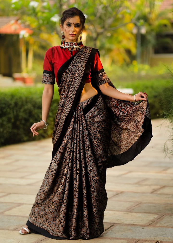 EXCLUSIVE BLACK COLOR AJRAKH SAREE