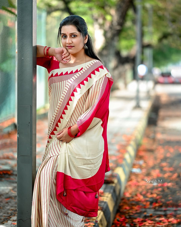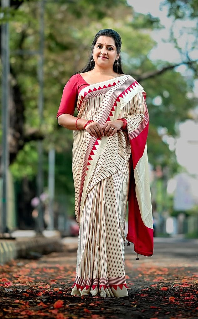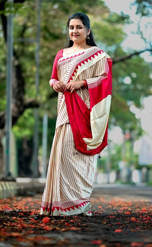 EXCLUSIVE PINK TEMPLE BOREDR STRIPE AJRAKH SAREE