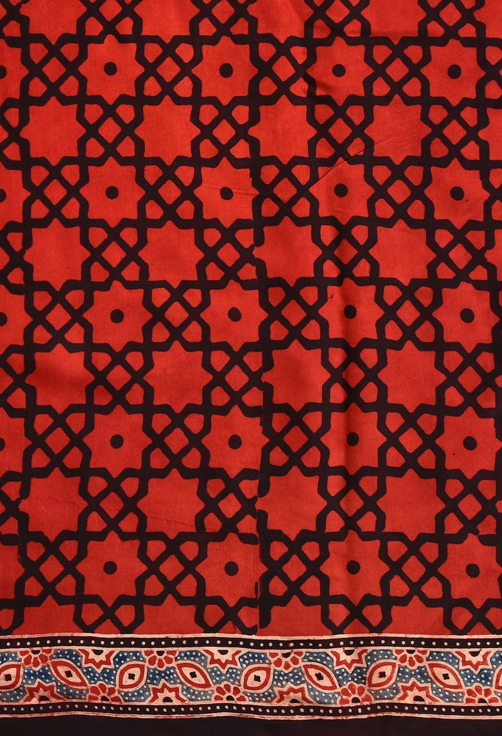 Red Ajrakh Printed Soft Gaji Silk Natural Print Saree